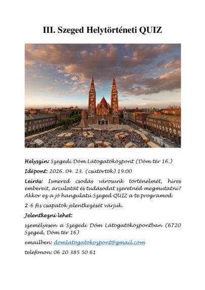 Kvízmesterek figyelem! Immáron harmadik alkalommal kerül megrendezésre a Szeged Helytörténeti KVÍZ.